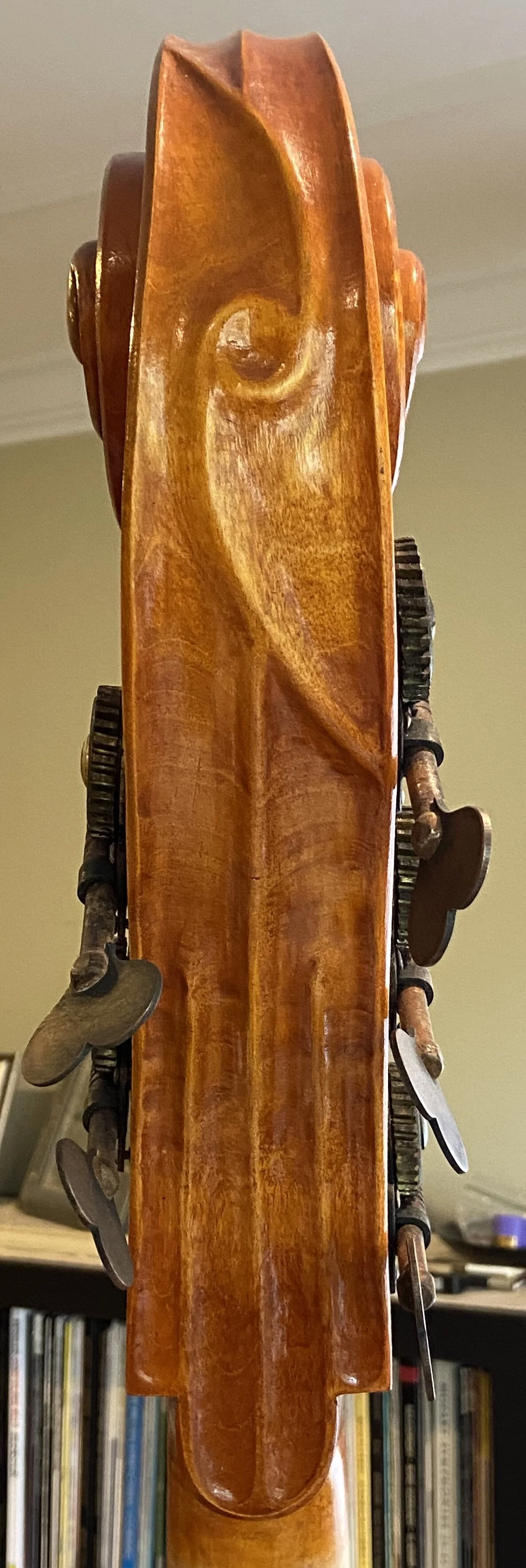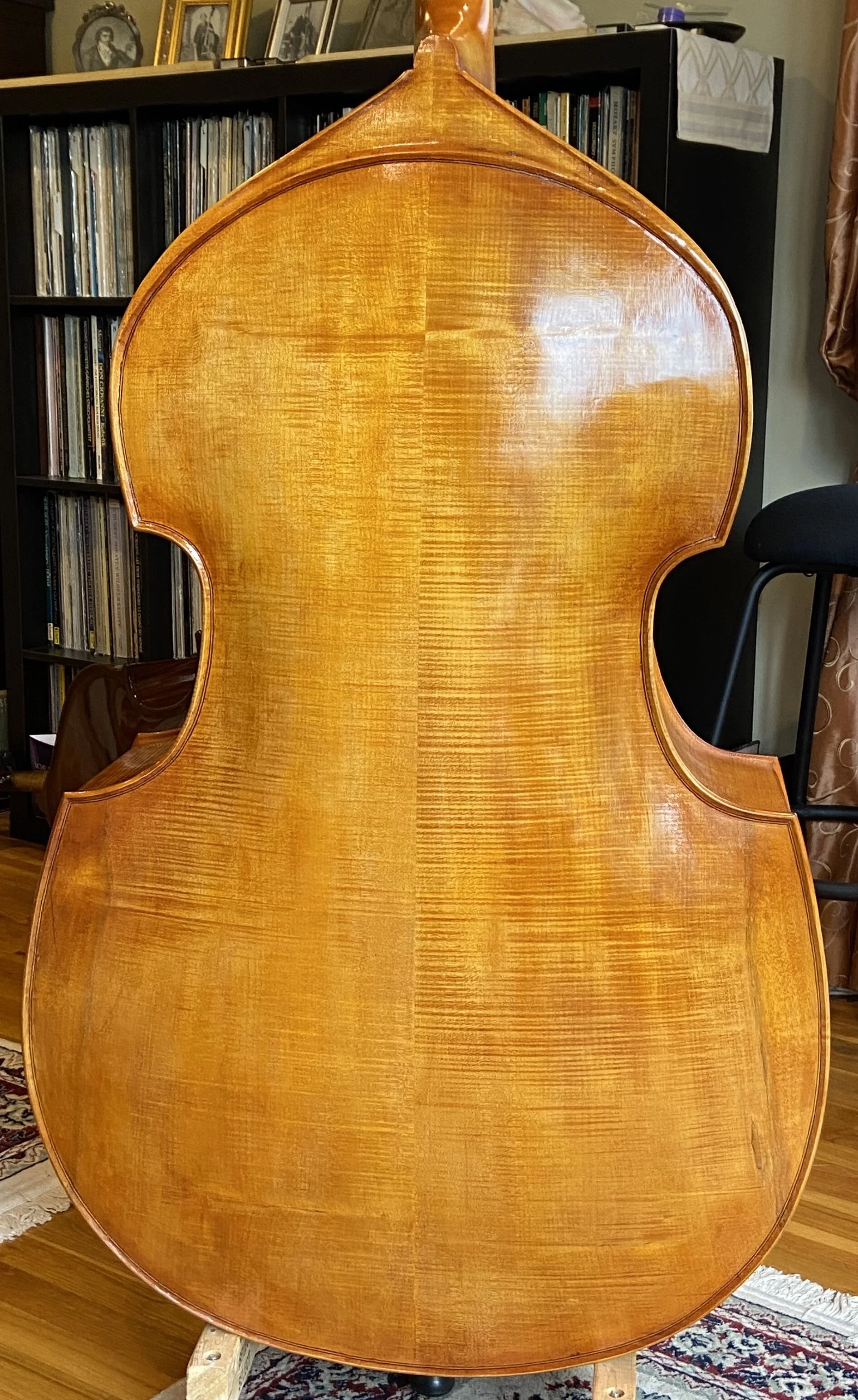 This 5 string bass by Brazilian luthier Alberto Viegas is a beast. It has a huge cushiony sound with enough core in the mid-range to make it really project. It is a big bass but has a manageable 41 1/2” string length. Alberto’s basses have won “Certificate of Tone” awards at the 2003 and 2007 ISB Conventions.